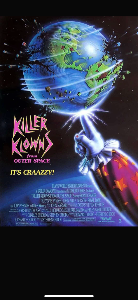 Recently I watched the fourth season of Stranger Things and I was in kind of black hole afterwards… I needed more eighties sci-fi and horror movies… and I was recommended Killer Klowns from outer Space… so of course I went looking for it…