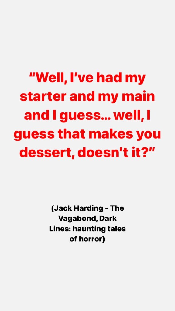 But apart from those, I loved reading all the others and my definite favourites are ‘The Vagabond’ (bloody), ‘The Foot of the Bed’ (spooky), After Eight (creepy), Driving in the Dark (teaching a valid lesson), Sadie’s Snake (funny) and of course React (surprising even after a second read)!