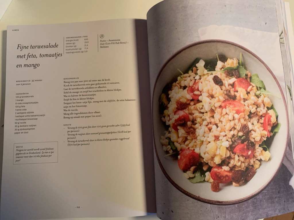 De tips qua slapen en bewegen zijn voor mezelf heel belangrijk: ik zit heel vaak (lezen, bloggen…) en zou iets meer moeten bewegen (ik nader de helft van mijn veertiger jaren) en ben niet altijd de beste slaper… Maar hoewel heel veel van de recepten er heel lekker uitzien, kan ik met heel veel daarvan niks aanvangen… het probleem met gezond eten is vaak dat er enkele voedingsmiddelen worden gebruikt (noten, eieren en bananen) waar ik net allergisch aan ben (en dat is in heel veel gezonde snacks en ontbijten vooral het geval) dus daar kan ik weinig mee aanvangen… (als diabeet is dat probleem al vaak voorgekomen in gesprekken over voeding)