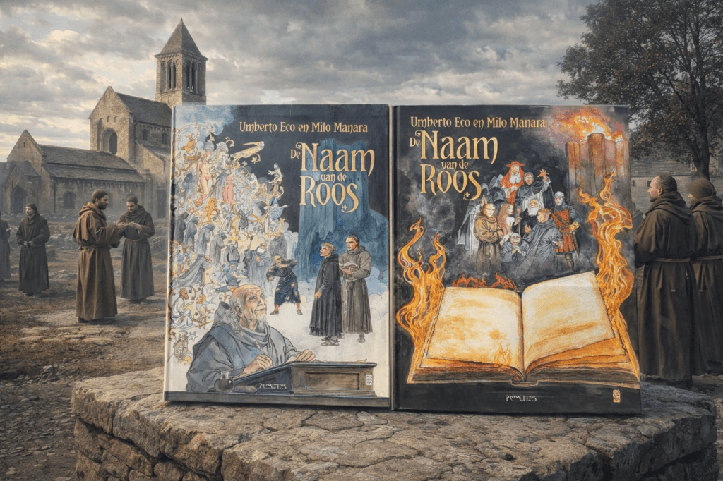 Had Umberto Eco nog geleefd hij had met veel plezier deze versie van zijn boek gelezen, daar ben ik van overtuigd. Niet enkel omdat hij zelf een fervent lezer van ‘fumetti’ (Italiaans voor strips) was maar hij was ook fan van de tekenaar van deze graphic novel, Milo Manara. Voor mij is dit een nieuwe naam maar ik ben wel fan van de heel realistische en vooral héél gedetailleerde stijl waarin hij het verhaal van Eco tot leven brengt. (ik kan al niet wachten op deel 2!)