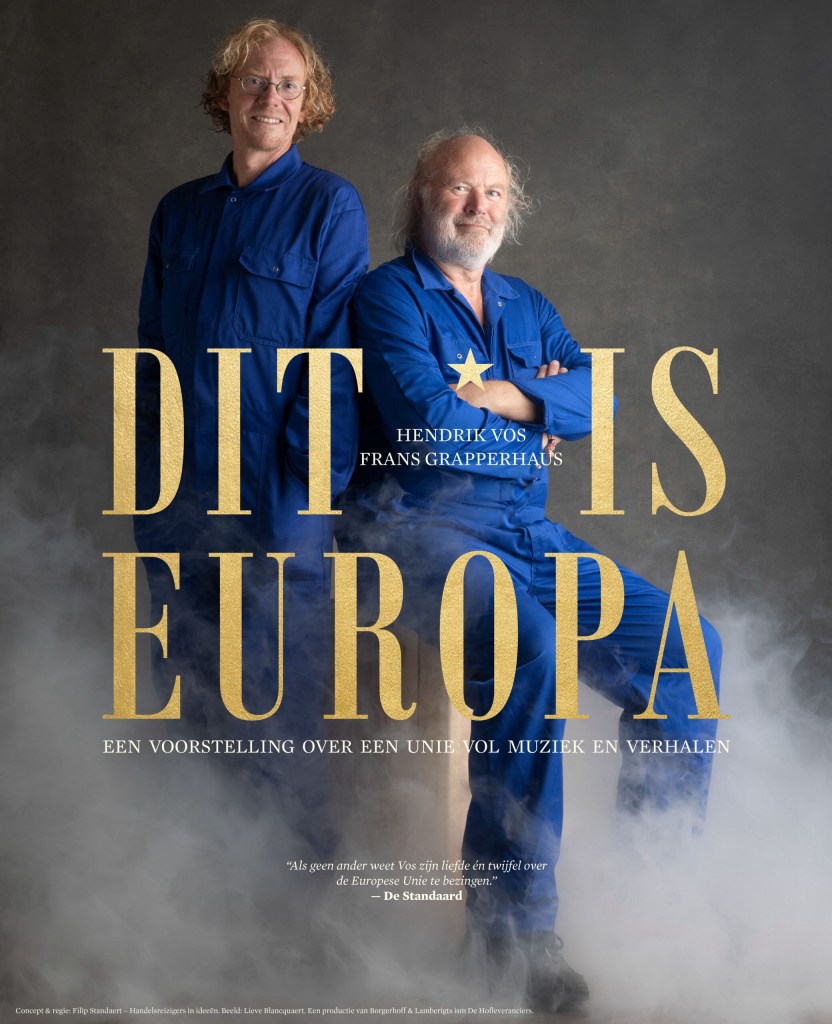 En dan is er dus nu ook de zaalshow ‘Dit is Europa’ waar Hendrik Vos in zijn heel energetische eigen stijl vol overgave vertelt over hoe de Europese eenmaking is ontstaan. Natuurlijk kon hij moeilijk een boek van meer dan 600 pagina’s en een geschiedenis van ongeveer tachtig jaar op anderhalf uur volledig vertellen dus heeft Hendrik zich gefocust op een aantal sleutelmomenten en vooral de hoofdrolspelers. (Over de Britse spelers is nauwelijks een woord gerept tijdens de voorstelling!)