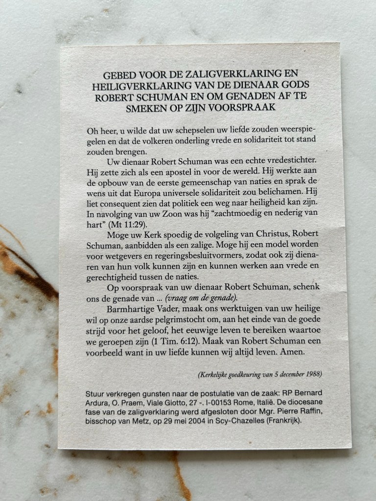 En wie erin gelooft, Robert Schuman moet nog een mirakel verrichten eer hij zalig of heilig verklaard kan worden dus voor zij die graag bidden: