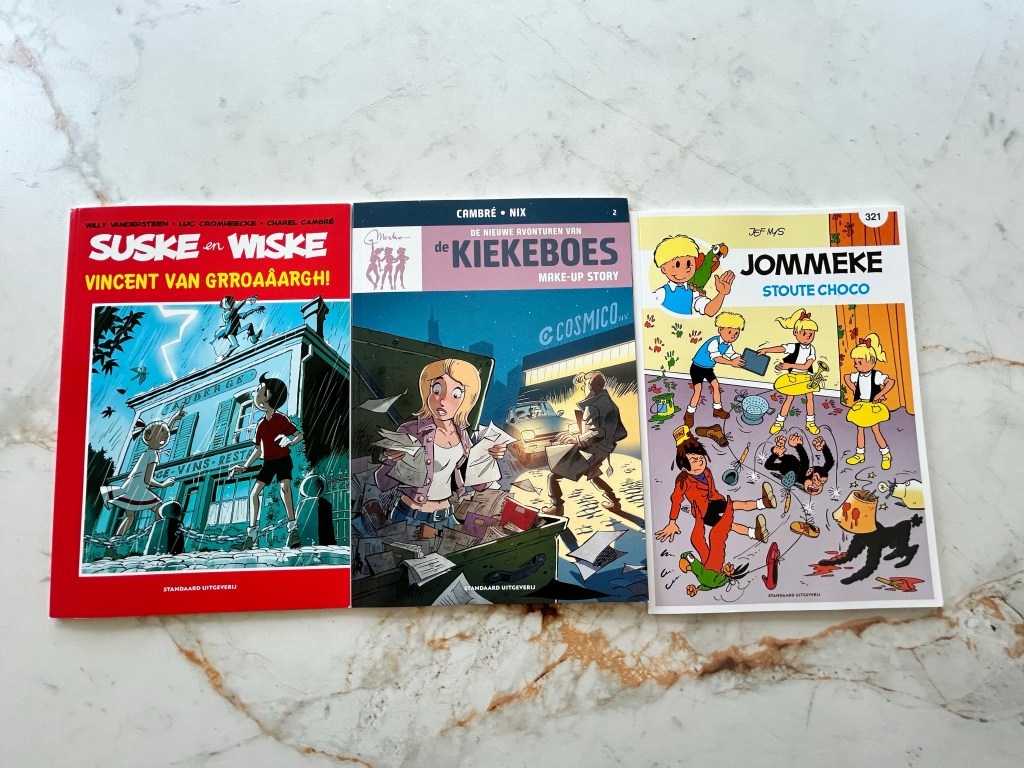 Dat waren de nieuwe strips van de maand juni die ik las. Daarnaast heb ik opnieuw een schare aan oudere Kiekeboes-verhalen gelezen, waaronder alle verhalen waarin de vampieren (‘de Mona-saga’) voorkwamen: