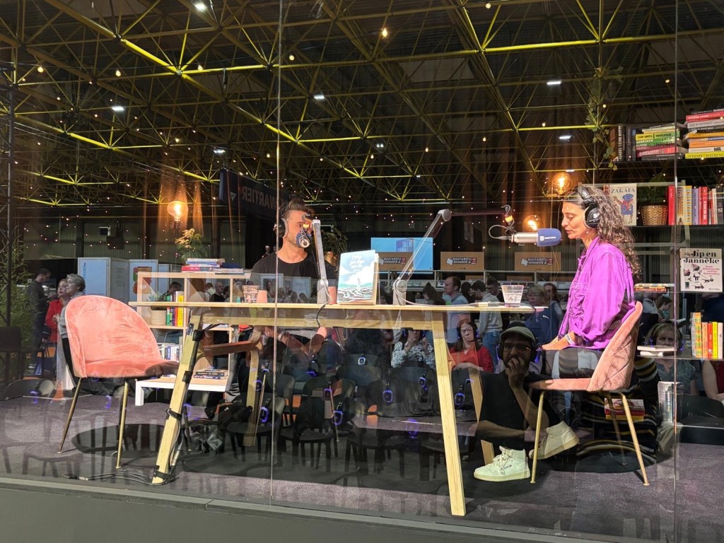 Op Boektopia worden ook live opnames gedaan voor Radio 1 met Ruth Joos en Bent Van Looy en wij mochten de opname meemaken (op 1/11) van Aimée de Jongh, de Nederlandse graphic novel artiest, die net een nieuwe graphic novel heeft uitgebracht gebaseerd op het boek ‘Lord of the Flies’ van William Golding! (Aanrader! Op mijn blog kan je de recensie ervan terugvinden. Momenteel loopt in Rotterdam ook een tentoonstelling van het werk van Aimée trouwens). Ik heb het geluk gehad en de moed om even tot bij Aimée te gaan na de opname en haar werk even op te hemelen. De dankbaarheid van een schrijver/illustrator is altijd enorm. Ook Koen Aelterman, Stephan De Winter en Toni Coppers lieten dit heel hard blijken.