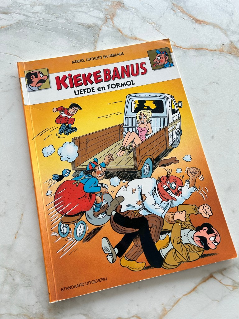 Een unicum in de stripgeschiedenis ontstond toen deze twee reeksen samenkwamen in dit album. Ik had nog het geluk deze destijds te kopen toen het nog ‘Kiekebanus: Liefde en Formol’ getiteld werd. Intussen is in beide reeksen de titel veranderd naar enkel ‘Kiekebanus’. Ik heb ook nog een editie waar je de keuze kreeg (geen idee hoe dat zit in de vernieuwde versies) welk einde je wenste, dat van Urbanus of dat van De Kiekeboes.