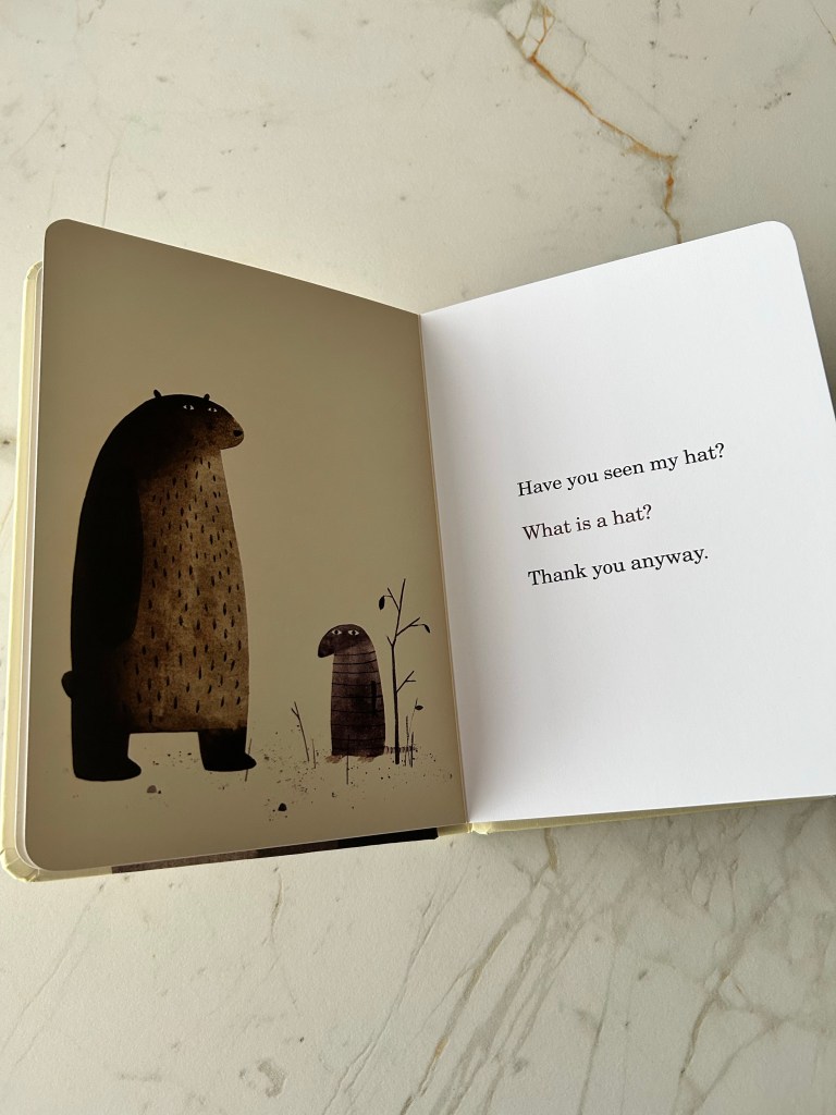A bear lost his hat and that makes him sad because what if he never sees his hat again?