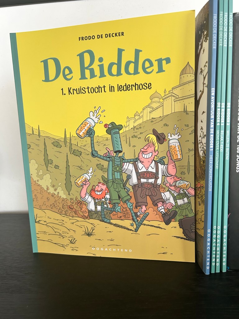 De Ridder, kruistocht in lederhose was het eerste verzamelalbum dat verscheen, oorspronkelijk in 2017 nadat het in Veronica Magazine en Eppo verscheen. (En de titel is alvast een grappige speling op de titel van het boek ‘Kruistocht in Spijkerbroek’ van Thea Beckman!