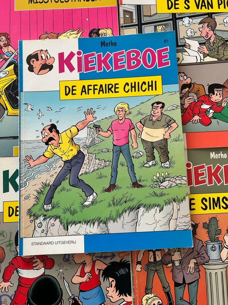 De Affaire Chichi is de laatste strip die verscheen in deze vorm. Hierna verandert de vormgeving van de covers alweer (na een tiental jaren in dit formaat geweest te zijn). Maar deze versie blijft ook niet zo heel lang want op een bepaald moment heeft Merho besloten de naam Kiekeboe op de covers te veranderen naar ‘De Kiekeboes’ wat ook meer paste bij de reeks, aangezien het niet enkel Marcel Kiekeboe is die de hoofdrol speelt. Meer hierover natuurlijk op het moment dat deze verandering zich inzet!