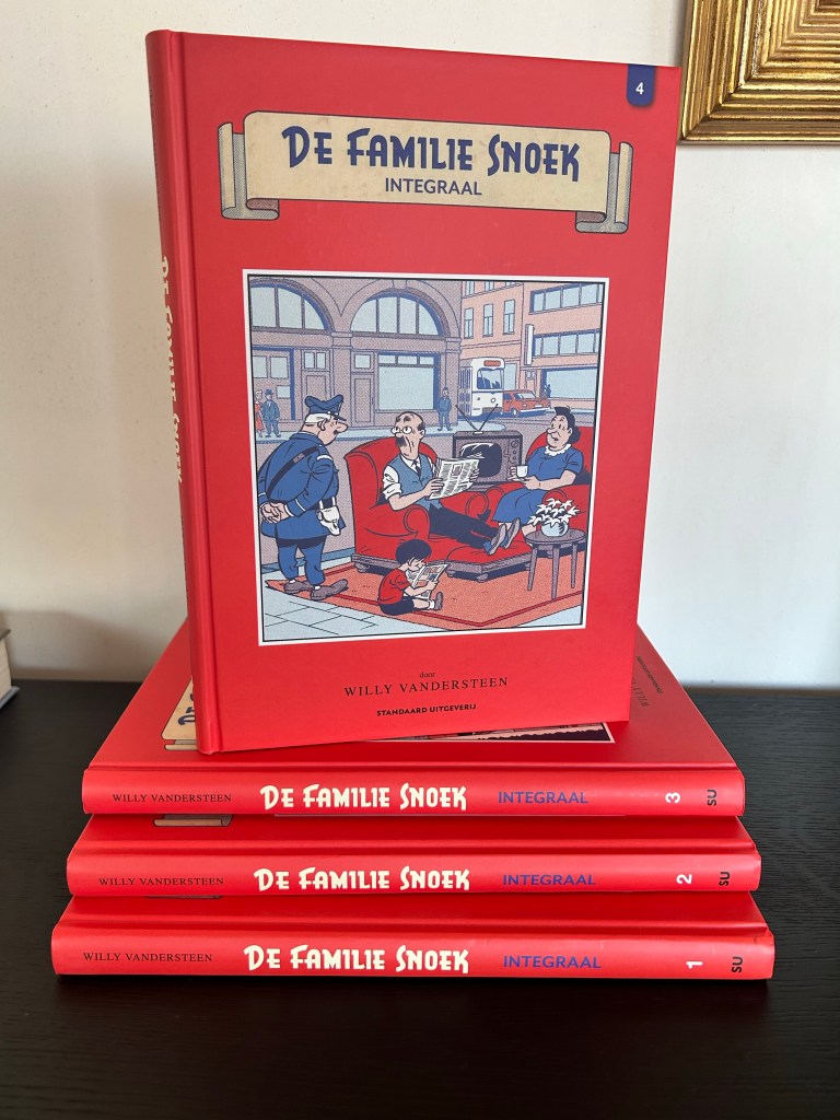 Hieronder zie je de vier integrales verzameld! Het zijn stuk voor stuk verzamelobjecten aan het worden en ik juich de uitgeverij toe omdat ze deze vergeten familie en andere vergeten stripreeksen een nieuw leven inblazen! Ik hoop dat we nog meer van dit moois te zien zullen krijgen. Voor wie dit graag verzamelt, er bestaan intussen integrales van Robert en Bertrand, De Rode Ridder, De Geuzen, Safari, Jerom, Biggles… en ik vermoed dat er nog wel meer zullen komen!