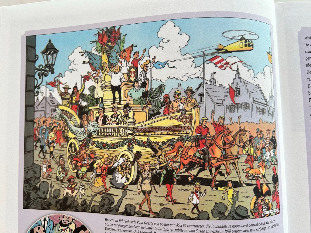Willy Vandersteen was een veelzijdig tekenaar en zijn reeksen gingen van de Middelleeuwen (De Rode Ridder), tot hedendaagse reeksen (Suske en Wiske, waarvan hieronder een prent met alle figuren uit Vandersteens oeuvre voor hun 25ste bestaan in 1970).