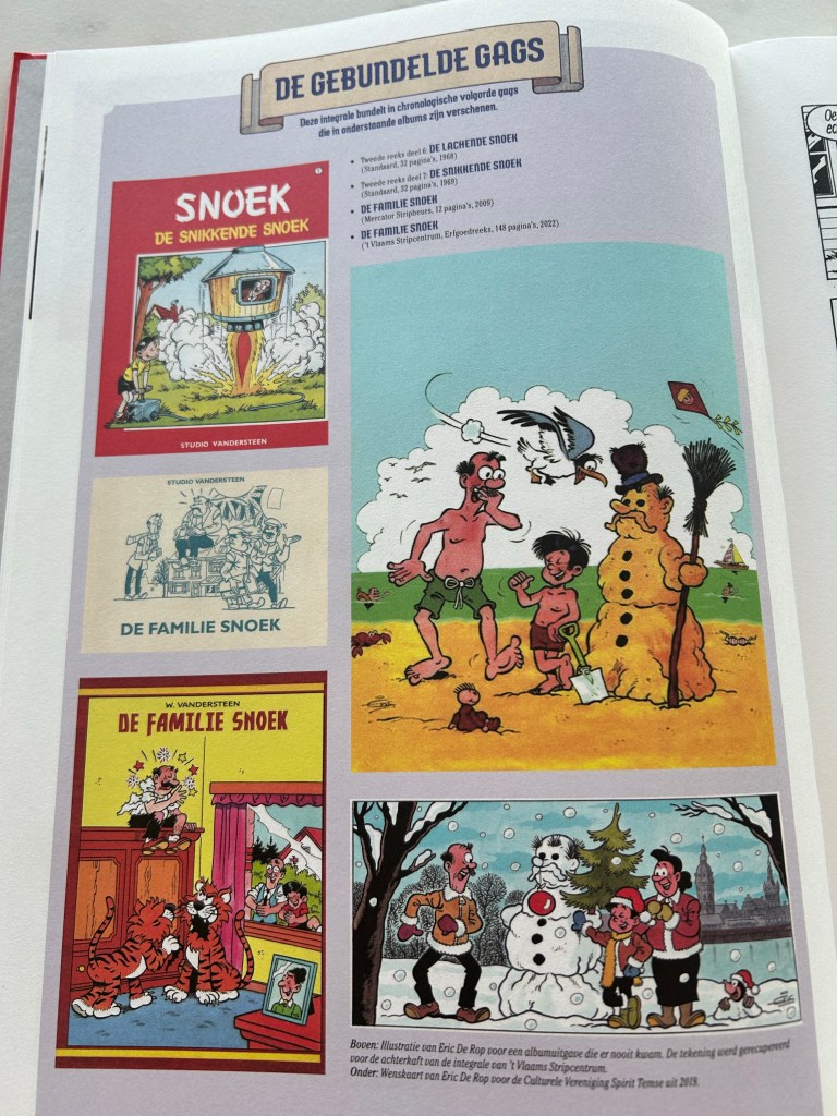 In het dossier voorafgaand in dit album lees je waarom dit allemaal zo is. Deels is te danken aan Jan Merckx, die zijn schouders zette onder heel wat nieuwe projecten waaronder tv, strips, kranten en tijdschriften. Hij werd een grote naam in de wereld van de media. En hij was een goede vriend van Willy Vandersteen! Het is dan ook merkbaar in de reeks dat de invloed van Merckx heel goed duidelijk was in deze laatste gags. Ook komt in het dossier nog eens aan bod dat ook de familie Snoek in het Engels een stem vond, hoewel dit ook terug heel kort was.