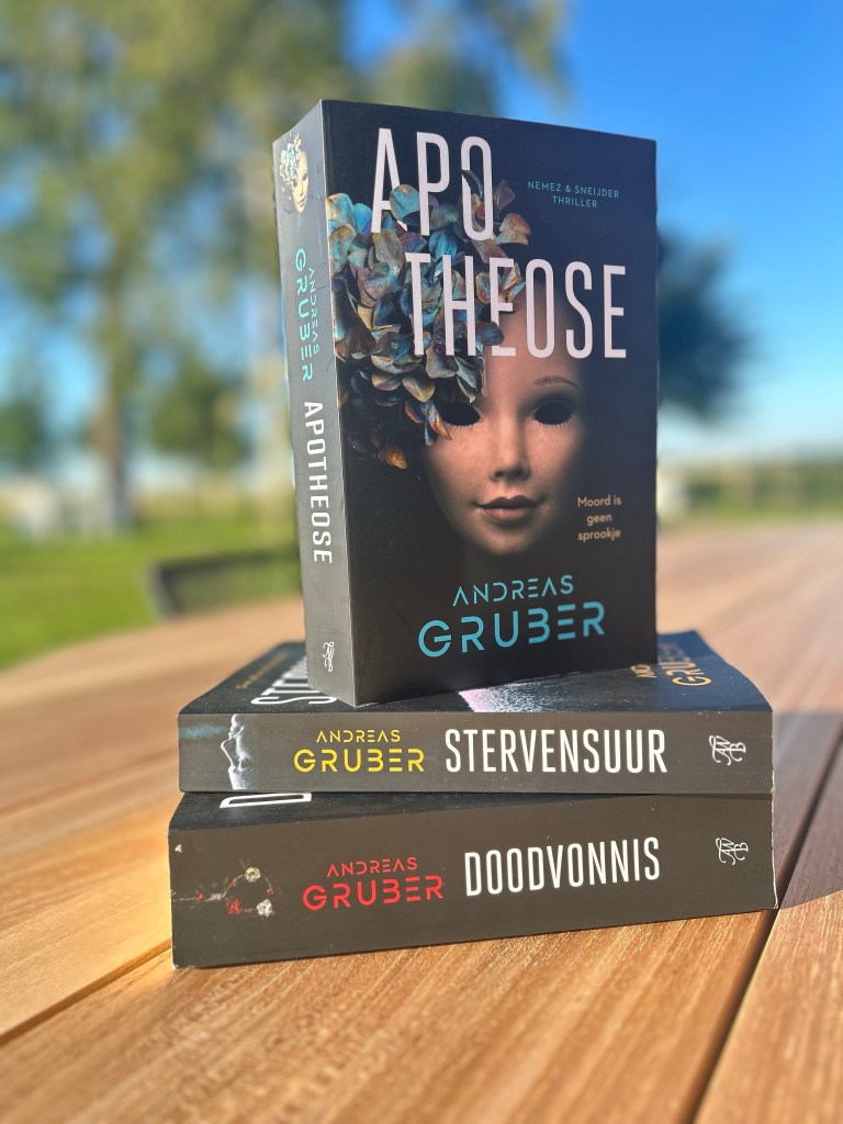 Apotheose (de titel van dit boek is heel toepasselijk!) is intussen het derde boek in de Nemez & Sneijder reeks en is in mijn opinie al het tot nu toe beste en spannendste deel in de reeks. Het boek staat geen moment stil en is een van de bloederigste, wreedste delen tot nu toe. Gruber kan samen met Carter en Slaughter in het rijtje gaan staan van thrillerauteurs die het lezen meer dan waard zijn!