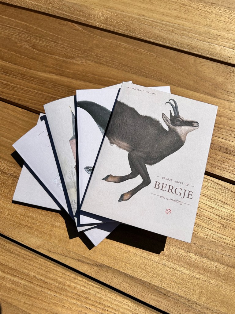 Ook nu is de tekening op de cover van Joris De Raedt een geweldig mooi stukje kunst (alleen al daarvoor wil ik alle ‘wandelingen’ die verschijnen verzamelen. Maar het verhaal, de wandeling, die Bregje in dit boekje vertelt/maakt lag me dan weer ietsje minder, maar dat kan te maken hebben ook dat ik geen grote liefhebber ben van bergen. Ik hou ervan om ernaar te kijken, dat wel, maar om ze te veroveren, te beklimmen, te bestijgen en de kou te moeten trotseren (ook in de zomer), daar pas ik dan weer liever voor. Anderzijds heb ik wel een zekere affiniteit met mensen, zoals Paolo Cognetti, die de bergen als podium gebruiken en de eenzaamheid, het geïsoleerde ervan te beschrijven. En dat resoneerde dan wel terug bij me, ook bij ‘Bergje’.