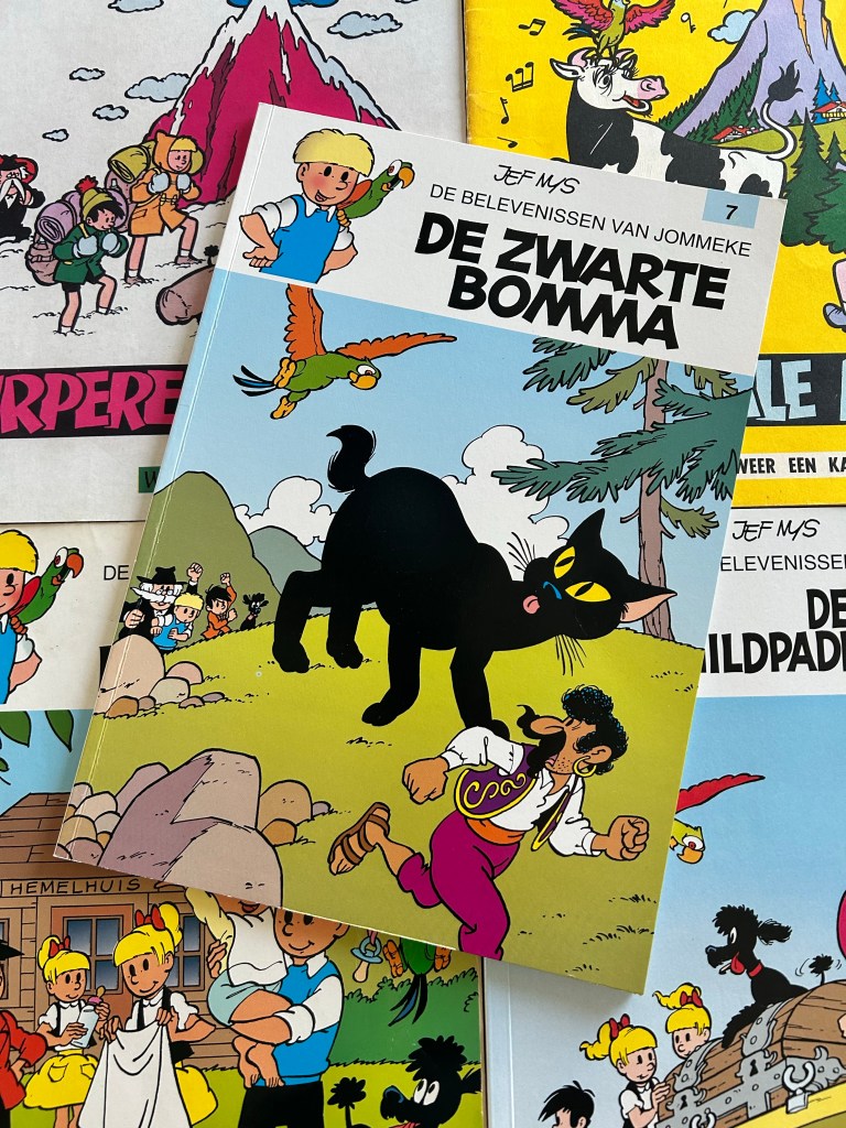 Dus gaan de vrienden maar naar professor Gobelijn, die hen moet helpen om de kat braver te maken. Daarvoor heeft de prof gelukkig een serum maar in zijn verstrooidheid spuit hij de kat echter in met een ander serum dat hij net ontwikkeld heeft, waardoor de zwarte Bomma plots gigantische proporties aanneemt. En dan begint het avontuur nog maar want iemand is getuige van de grote kat en beslist ermee op reis te gaan en geld te verdienen. Jommeke, Filiberke en Gobelijn zetten de achtervolging in, met een spuit waarin het juiste serum zit om de kat braaf te maken én te doen krimpen!