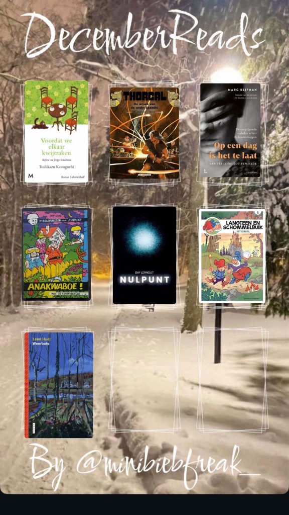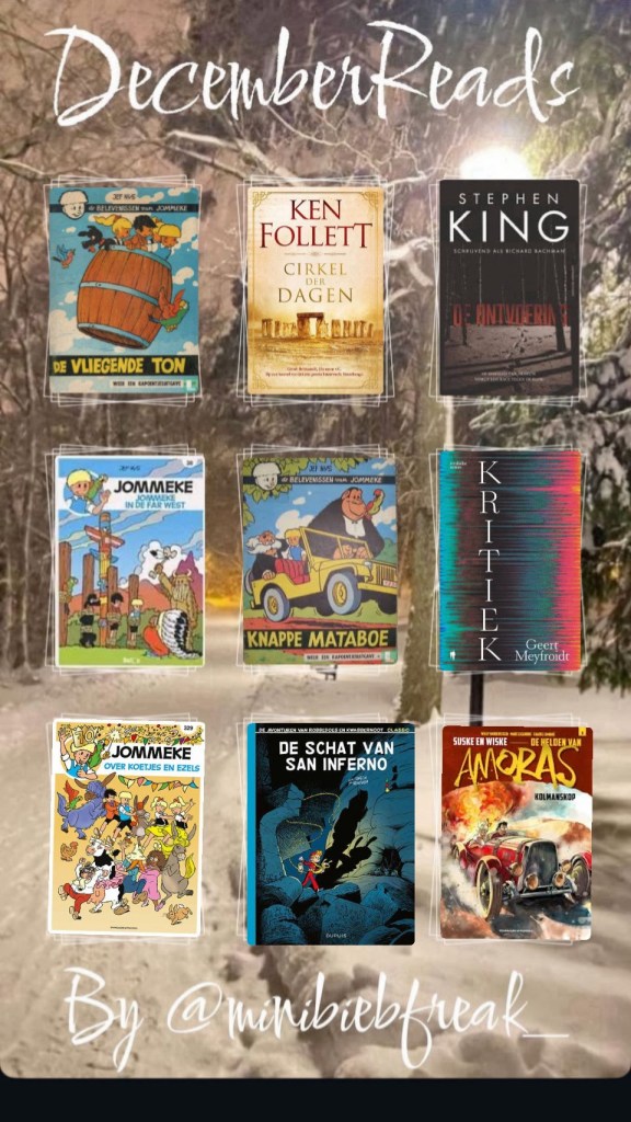 De laatste maand van 2025, waarin ik me vooral heb geconcentreerd op het wegwerken van een achterstand, mijn plan ook voor 2026, van heel wat boeken van Uitgeverij Lannoo. Er kwamen ook enkele boeken op mijn pad die ik niet verwachtte maar die wel heel verrassend aangenaam lezen waren. De strips die deze maand verschenen zijn ook veelvuldig en ik deed verder met het herlezen vanmijn Jommekesalbums. en naar gewoonte is het met deze periode vol feest keken we enkele films, vaak in thema. Een prettig eindejaar en een gelukkig 2026!