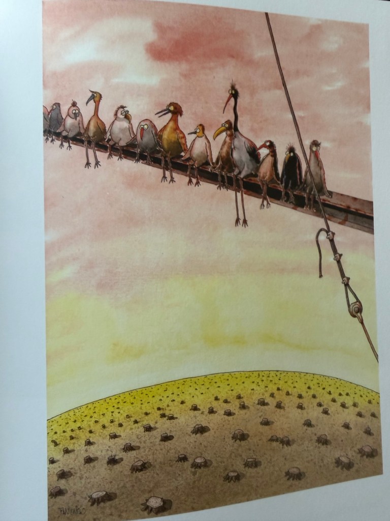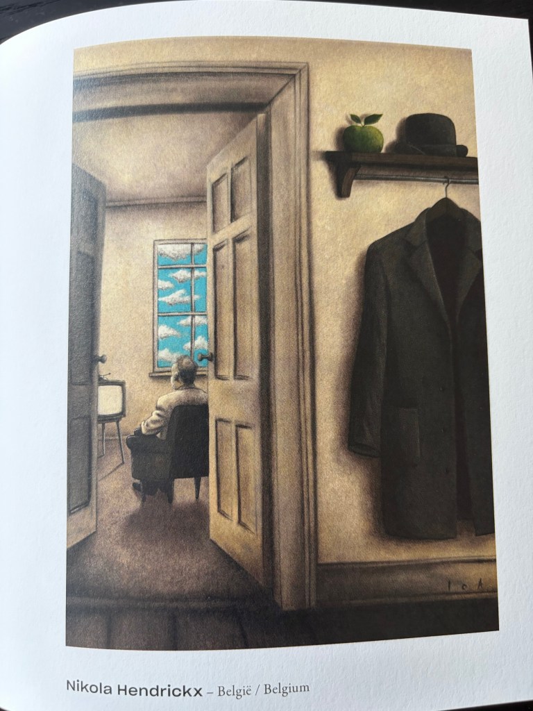 Hieronder volgen nog enkele voorbeelden uit het boekje maar ga vooral zelf op ontdekking, enerzijds door dit boek te doorbladeren, anderzijds door de cartoonisten te volgen en/of te steunen maar ga vooral ook langs bij het festival zelf want dat is elk jaar een wake-up call, maar wel eentje waar ook plaats is voor een lach en een traan.